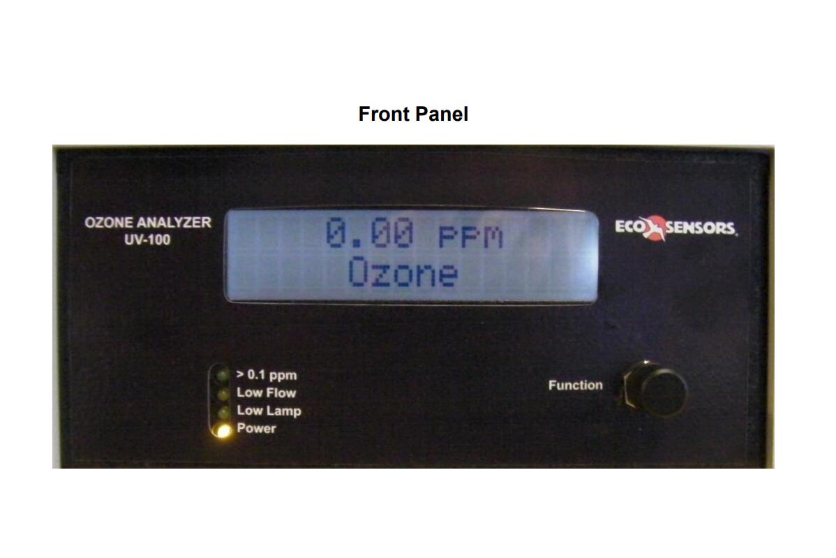 型號UV-100是專門為臭氧設計的紫外線吸收分析儀。它使用一個水銀燈過濾吸收在254納米。Eco Sensors設計緊湊,采用 很新的數(shù)字微處理器技術。UV-100的標準校準范圍是0-999 PPM。它的輸出是一個LCD數(shù)字顯示,0-2.5 VDC, 4-20 mA,和一個時間和日期戳的數(shù)字數(shù)據(jù)流,用于外部讀取和數(shù)據(jù)記錄。數(shù)據(jù)通過串口和USB輸出。還有一個內部數(shù)據(jù)記錄器,可存儲和轉發(fā)約90小時的數(shù)據(jù)。操作原理見附錄D。
